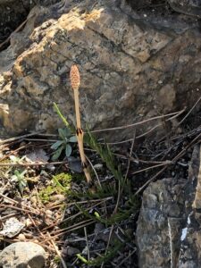 関所の松の木の根元で「つくし」を見つけました。