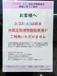 姫様道中開催日の3/28(土)は終日、関所西側の田園空間博物館駐車場がご利用いただけません。