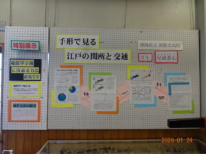1月24日(土)より、気賀関所内の姫様館にて、歴史研究レポート「手形で見る江戸の関所と交通」の特別展示を行っております。この研究は、静岡県立浜松北高校2年生の尾崎蒼心(そうご)さんが、東海道の3つの関所(新居・気賀・箱根)と中山道の3つの関所(福島・碓氷・西牧)に残る4800枚を超える通行手形の種類、出発地、目的地を分類、集計し、関所ごとの傾向を分析したものです。本研究は、本年度の「地歴甲子園」に出品されたものです。(地歴甲子園:奈良大学が主催する全国の高校生を対象とした地理や歴史に関する研究コンクール)地図やグラフを用いて分かりやすくまとめられています。お越しの際には、是非ご覧ください。