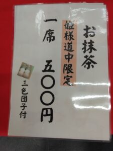 羽織体験やお抹茶もご用意させて頂いております。是非、姫様道中ご観覧と併せてお立ちより下さいませ。